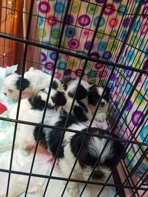 After getting ALL THE CHIPS and popcorn, we walked down to another store that had freaky Halloween stuff. I don't love freaky Halloween stuff, but alas, there was a sign on the door that advertised, "Shih Tzu Puppies." Well, I had already been feeling like Deac was lonely (read: I was lonely), and that he needed a playmate (read: I needed a playmate.)